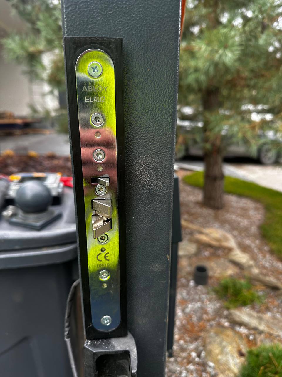Соленоидный замок EL402 ABLOY с цилиндром CY066 установлен на калитке частного дома.