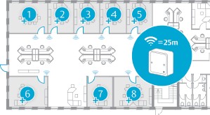 - Позволяет подключить к одному коммуникационному узлу до 8 Aperio™ устройств